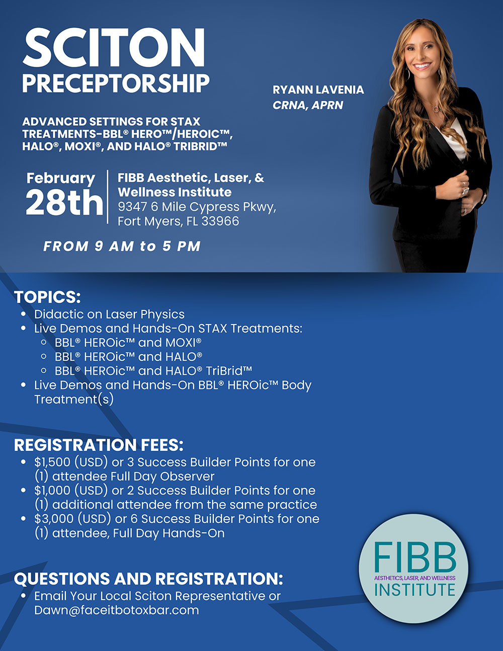 Join aesthetic educator Ryann Lavenia, CRNA, APRN for an immersive preceptorship designed for providers who want to sharpen technique, boost confidence, and deliver consistently beautiful results.
